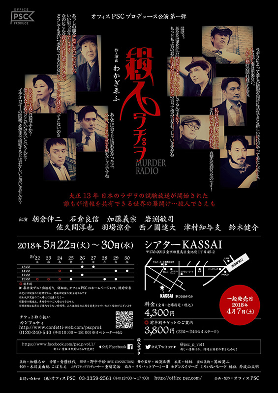 わかぎゑふ作詞・西ノ園が作曲と歌を担している舞台、『殺人ラヂヲ』の主題歌「オマエの声が聴こえる」が、稽古場風景等が散りばめられた公演PVとなってYouTubeに公開されました!!